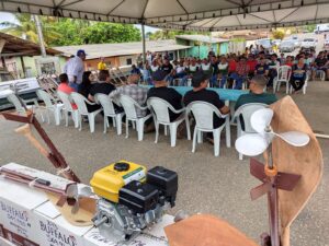 Fortalecendo o trabalho dos pescadores da Colônia Z-5, em São Luiz do Anauá, o Governo de Roraima, por meio da Seadi (Secretaria de Agricultura, Desenvolvimento Inovação), realizou nesta sexta-feira, 19, a entrega de equipamentos, garantindo mais segurança na atividade e impulsionando a produção local. Ao todo, 16 barcos com motor de popa e rabeta foram entregues a pescadores do município, em um encontro que reuniu autoridades, servidores, produtores rurais e a comunidade. A iniciativa valoriza quem vive da pesca, gera renda, fortalece a economia local e reafirma o compromisso com o desenvolvimento sustentável das comunidades ribeirinhas.